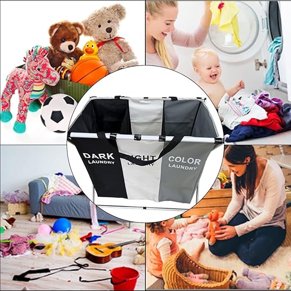 - 3 Sections Large Capacity Removable & Waterproof Laundry Store Bag