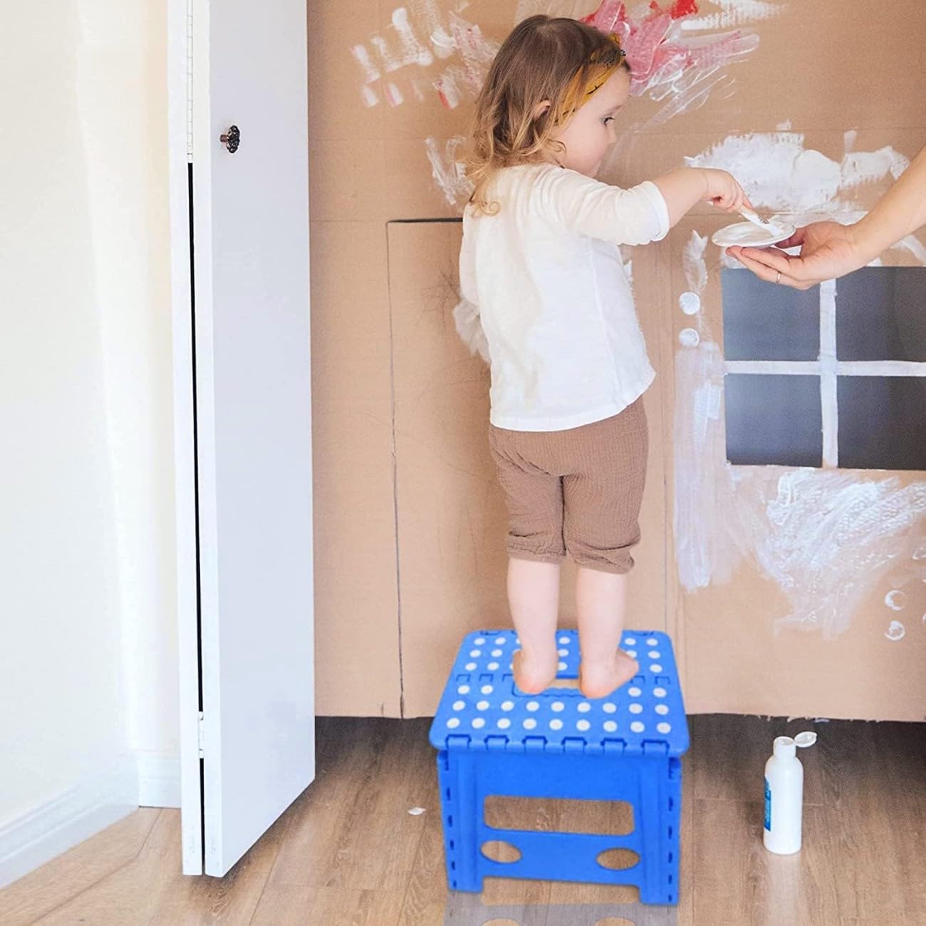 - The strong, durable and foldable step stool is made for kids and can hold up to 300 pounds.